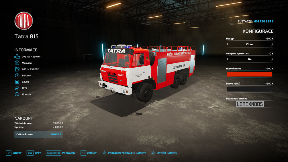 Jako dárek jsem se Vám rozhodl tento rok věnovat je modifikace Tatry 815 (původně od Lukasina), kterou jsem využil a předělal na hasičskou verzi. Pro ty, co si myslí, že vlastně nic neumí, mám ale smutnou zprávu. Umí toho dost. Je funkční s officiálním Emergency packem od Creative mesh. Díky tomu můžete pomocí tatry řešit spoustu mimořádných událostí od dopravních nehod, technické pomoci, či hašení požárů. Technika obsahuje funkční vodní lafetu, kterou můžete hasit zmíněné požáry. Dále nabízí možnost připevnit tažné tyče( z ModHubu), která má své místo na krabicích a dá se využít k vyproštění vozidel. Nechybí animace pomocí Interactive Control (IC) na úložné prostory a žebřík. Tatra uveze 8200l vody například pro doplnění vody chovným zvířatům. Součástí modu je i ikonická siréna a LED majáky.